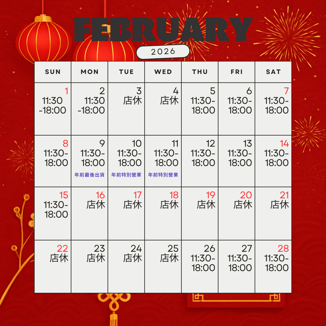 2/16 ~ 2/25 店休,網路訂購暫不出貨,2/ 26恢復正常營業,網路訂單依序出貨。